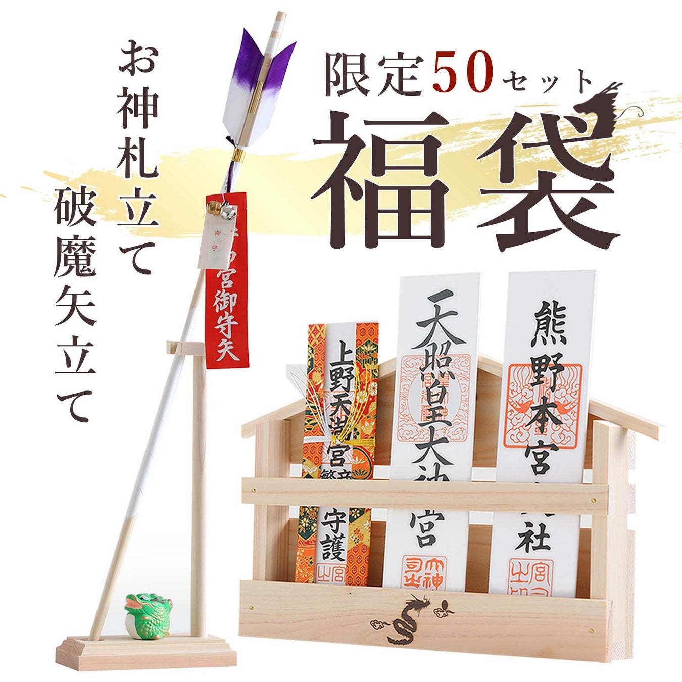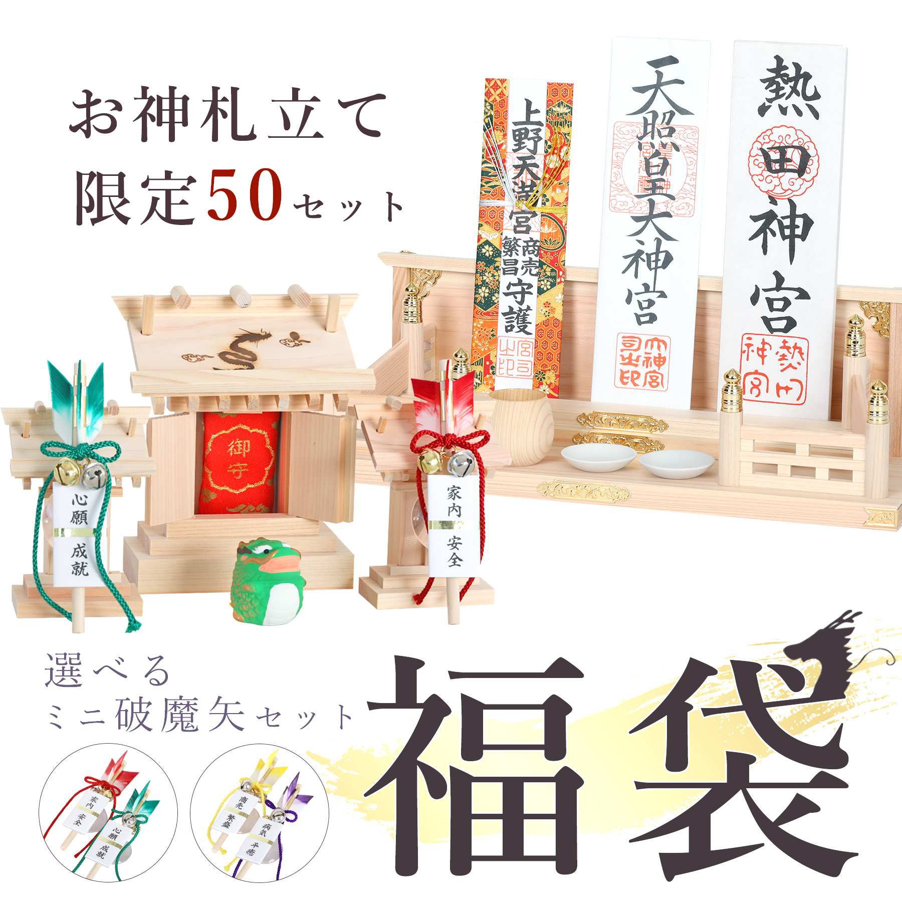 ② 2024年 福袋 モダン神棚セット 「鎮守の杜」 お守り入れ・ミニ破魔矢 付き ¥15,000
