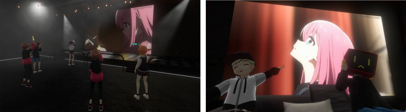 本イベントでは、TVアニメ「ぼっち・ざ・ろっく!」に登場する劇中バンド「結束バンド」が歌うOP曲「青春コンプレックス」を含む、計7曲のMVをイベントスペースにて上映します。同スペースには、ファン同士が交流するコミュニティスペースを併設しており、参加者はアバターとなって音声、チャット、エモーション等でファン同士のコミュニケーションを図ることが出来ます。