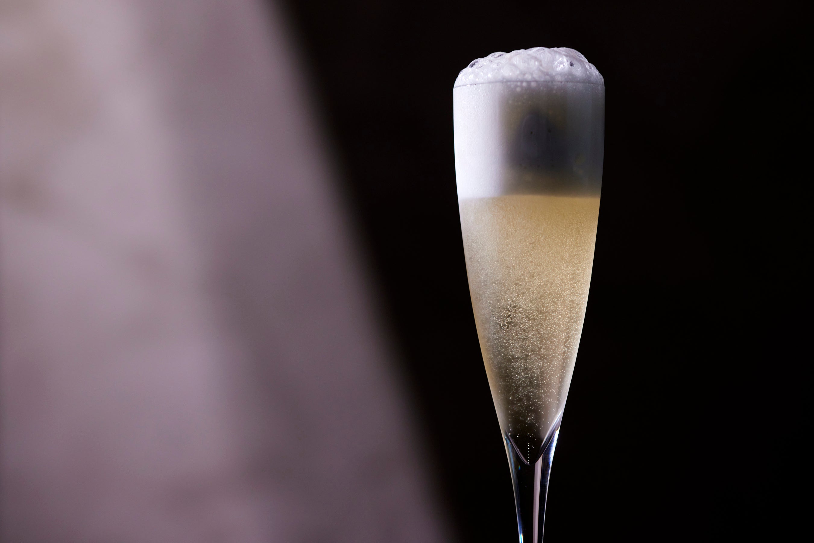 シャンパンにawaはちみつを加えると…激しく発泡する様子は圧巻。