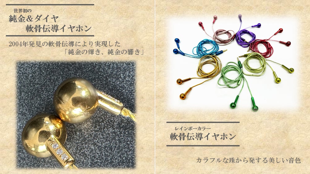 世界初!純金&レインボーカラーの軟骨伝導イヤホンを展示