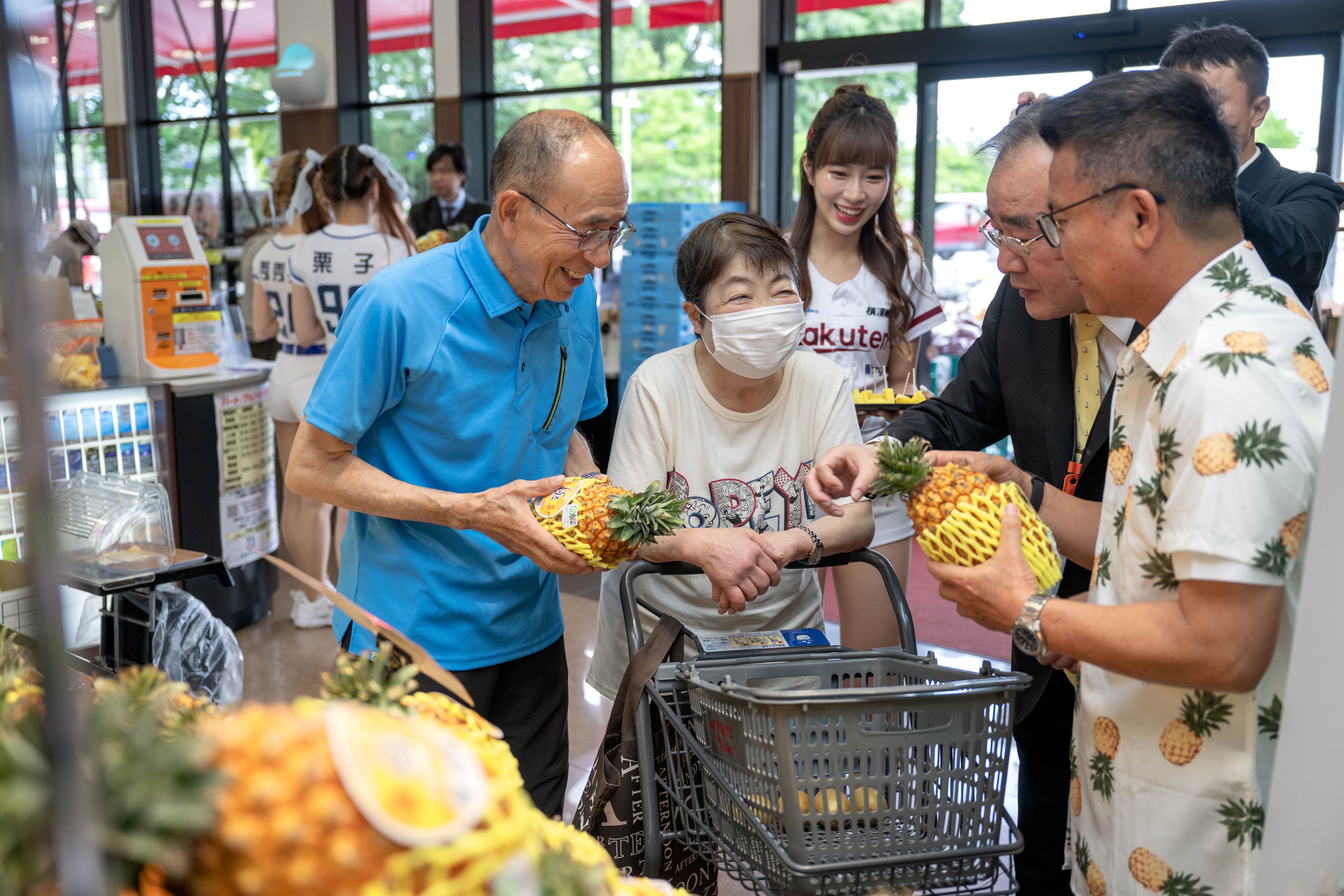 農業部は読売ジャイアンツとの提携だけでなく、本日の午前、SAEKIスーパー多摩平の森店でも「台湾パイナップルPRイベント」を実施した。胡次長が自ら日本の消費者に台湾パイナップルの特長や長所を説明し、他国産フルーツとの風味や食感の違いを紹介した。より日本の消費者が台湾フルーツの魅力をより深く理解し、購入意欲が高まることを目指している。他にも、当部は日本の大手青果サプライヤーであるドール・フード・カンパニー(Dole)、日本ファーミンド株式会社、および流通業者である東京佐伯株式会社(