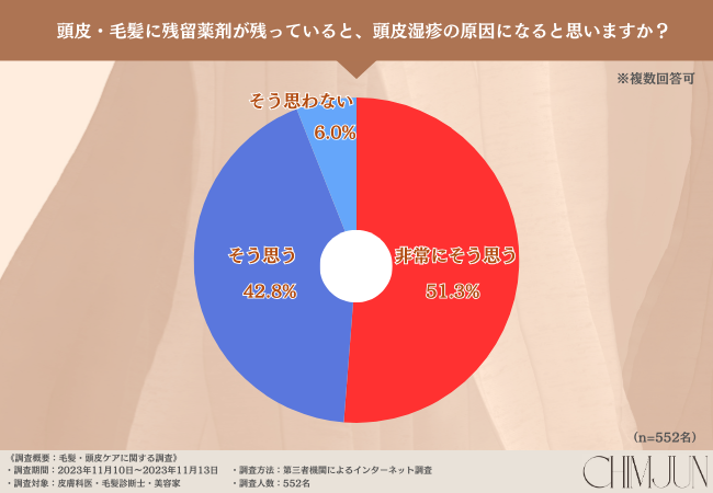 残留薬剤は頭皮・毛髪の敵!9割以上の専門家が残留薬剤があると、頭皮・毛髪トラブルの原因になると回答!