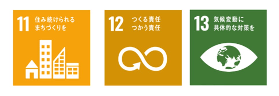 本取組では、上記のCO2 排出量削減により、持続可能な開発目標(SDGs)のうち特に以下の3つの目標への貢献を目指します。