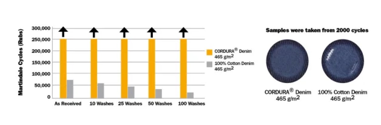 ◆特徴③:表地には耐摩耗性に優れる「CORDURA®︎」を織り込んだデニムを使用