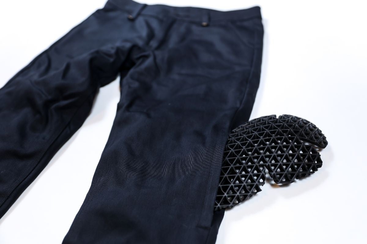 膝部分にはプロテクターを挿入可能。自然な見た目のまま、体を守ります。