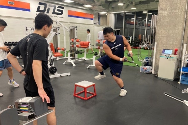 このプロジェクトは「DAH」と提携して運用するもので、専属のパフォーマンスコーチによる指導を年間を通して受けることができます。基礎的な体づくりはもちろん、身につけたパワーをフットボールのパフォーマンスに活かすことを目指して、週1~2回、平日夜にグループセッションを継続しています。