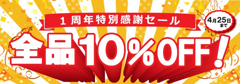 お客様への日頃の感謝の気持ちを込めて、2024年4月1日から4月25日までの期間、全ての商品を10%OFFにて販売いたします。この機会にぜひお買い求めください。