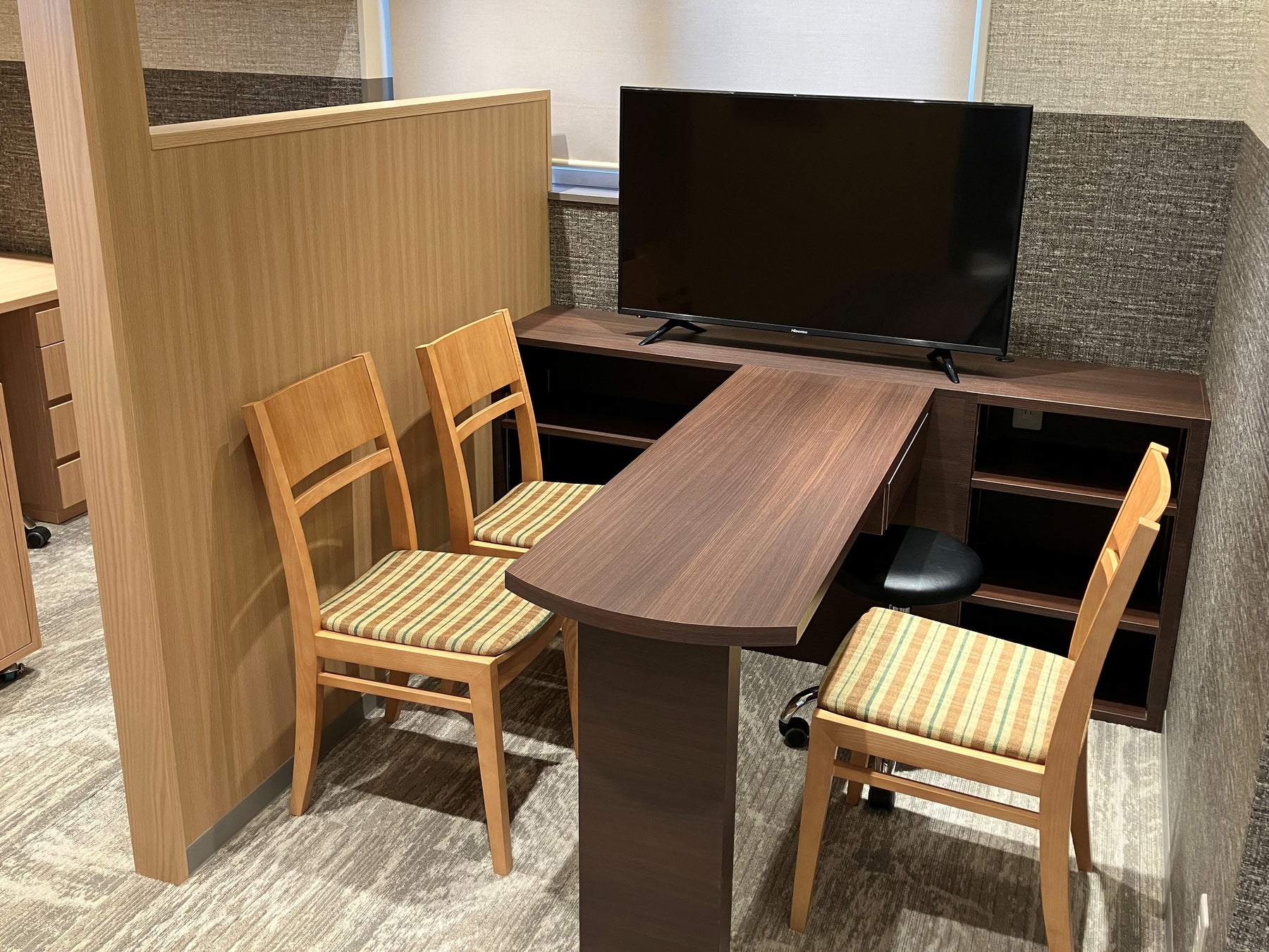 このほか、既存の2室あるカウンセリングブースには、聞こえの状態を視覚的にご説明できるようモニターを設置、フロア内のご相談コーナーはプライバシーに配慮してレイアウトしました。初めてご来店される方にも、調整やご相談に来られる既存のお客様にも、気軽にお立ち寄りいただけるアットホームな空間を目指しました。