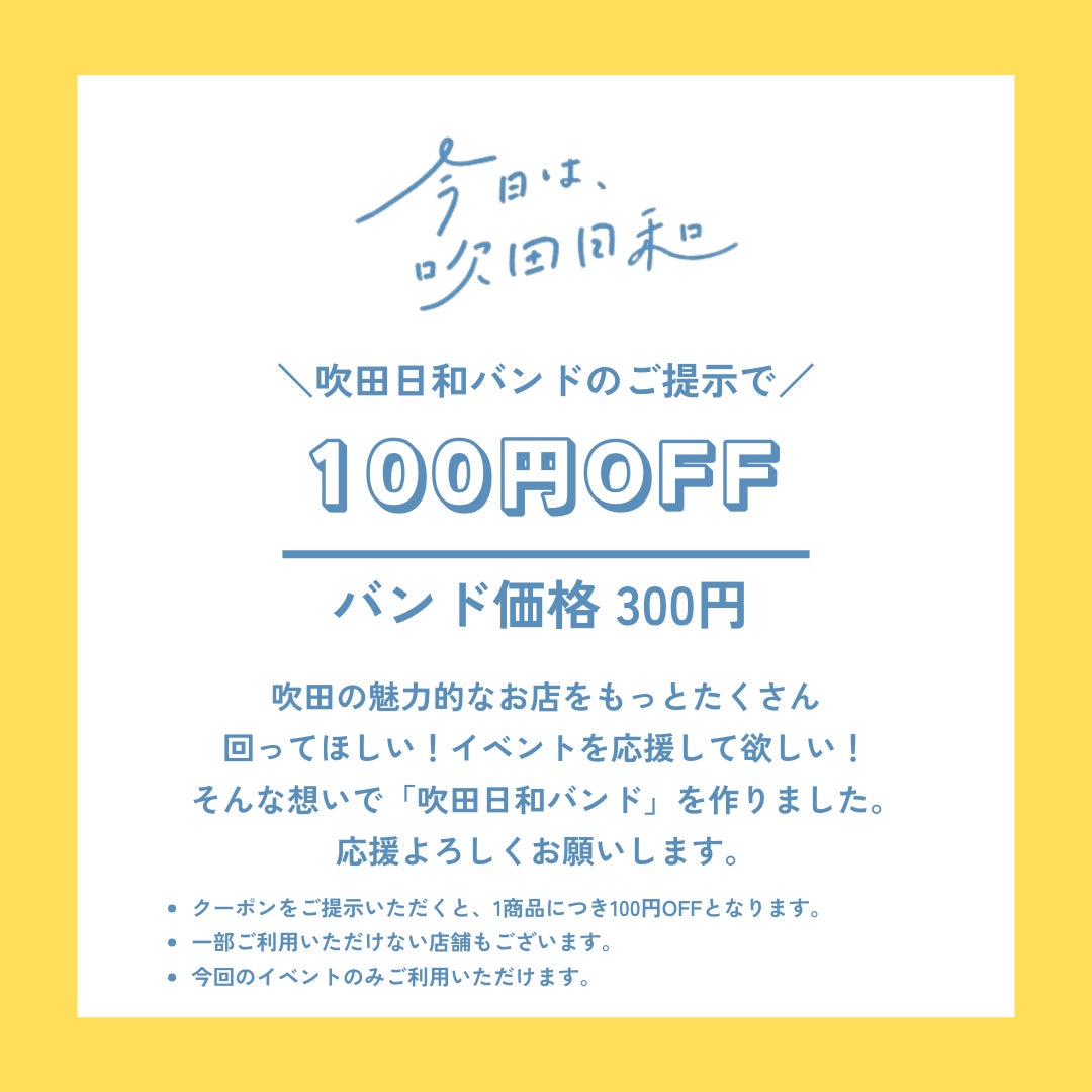バンドをご提示いただくと、1商品につき100円OFFとなります。