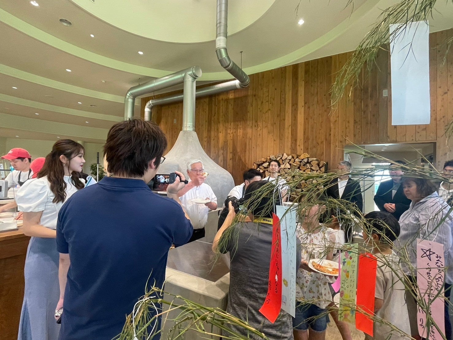 7月7日は地元の産山学園とその関係者を招待し、子供達の夢を書いていただいた「夢短冊」をディスプレイ、思い思いの子供達の夢と共にプレオープン、このレストランを通じて村へ貢献することで1つでも多くの夢を叶えていこうというスタートラインを切りました。