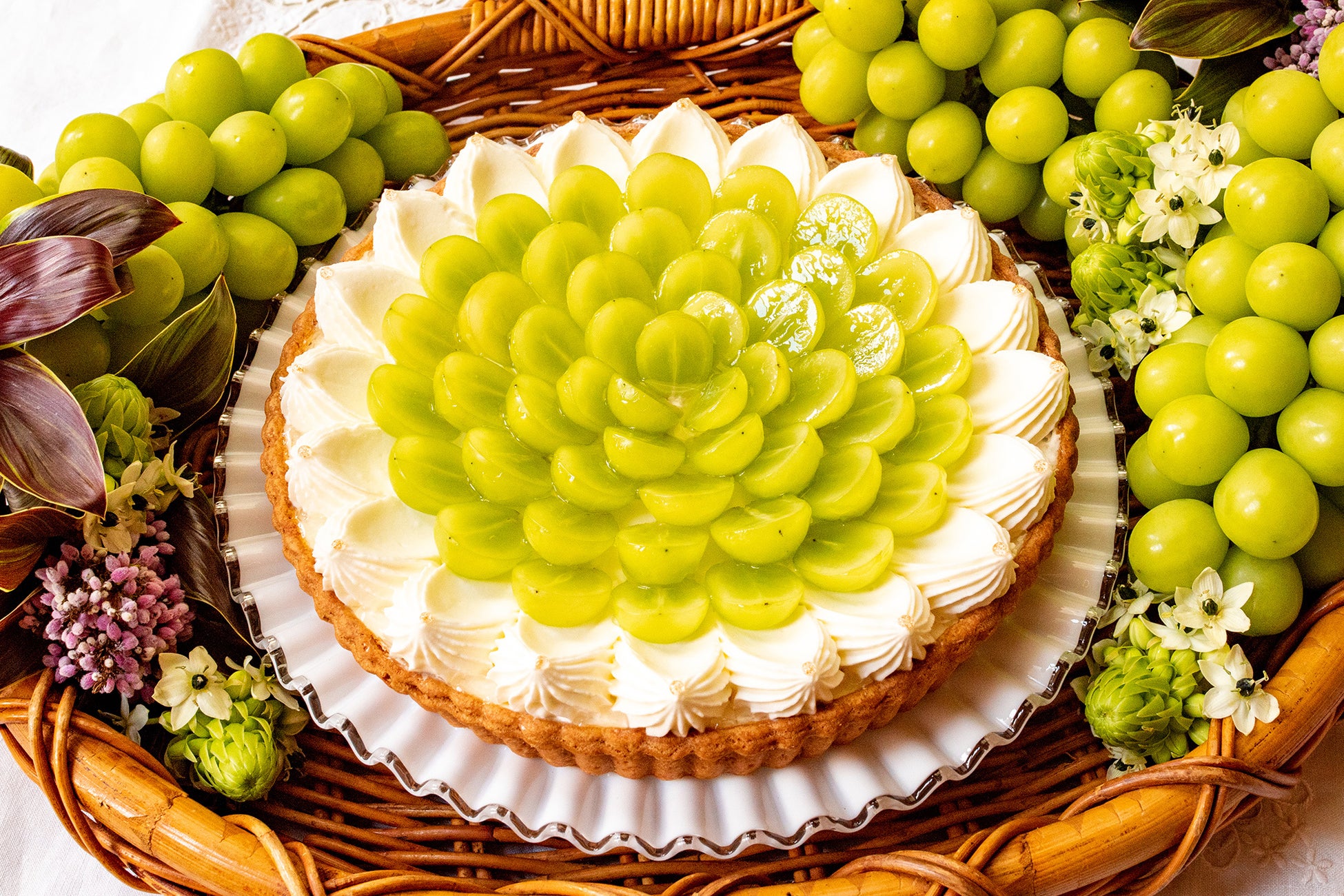 パリッとはじける果皮ごと楽しめる葡萄となめらかな口どけのレアチーズ、はちみつを加えたクリームを組み合わせたタルトです。みずみずしい葡萄とレアチーズの濃厚な味わいの中にはちみつの芳醇な香りが広がります。