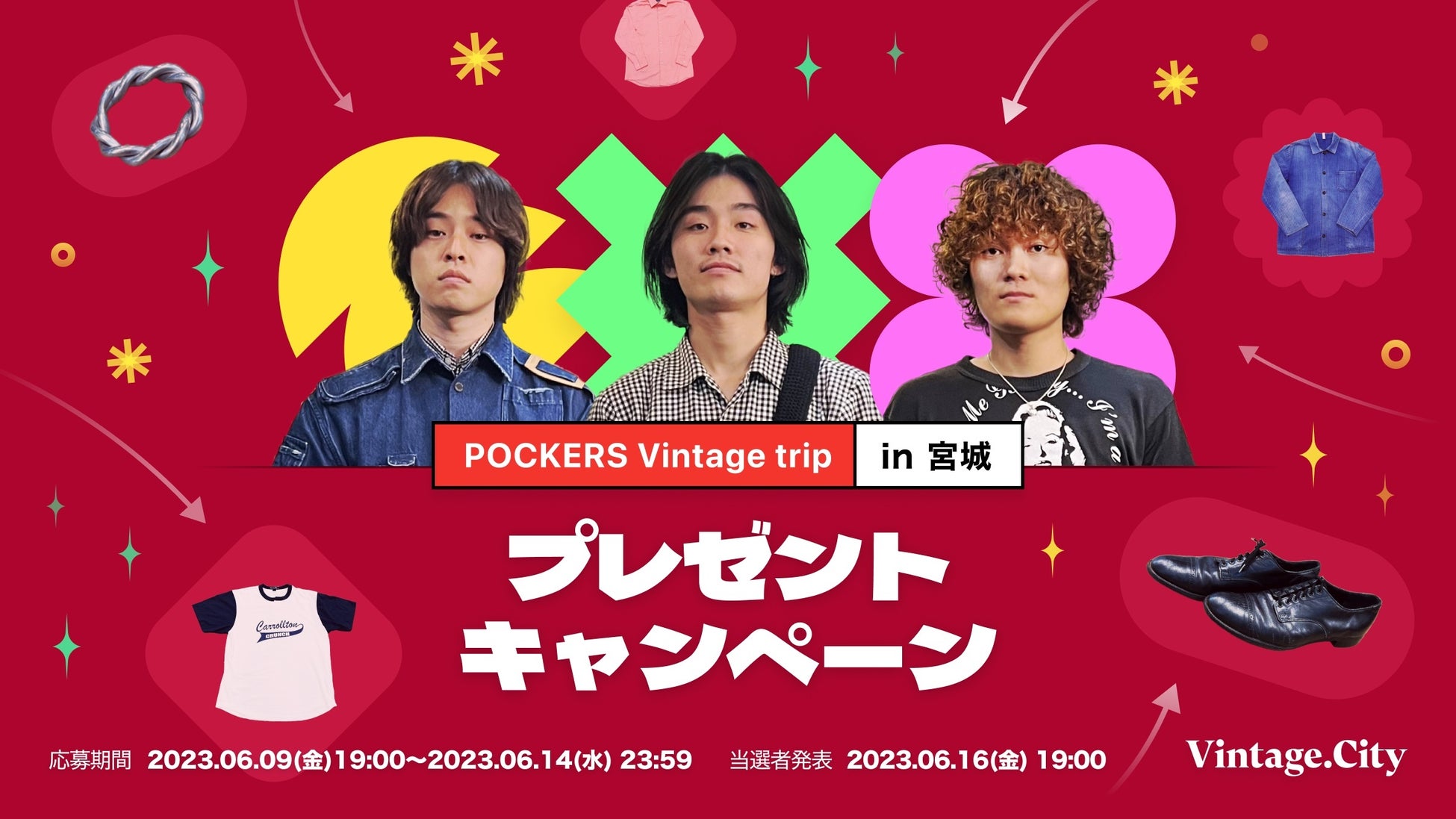 Vintage. Trip #6の動画で、ポーカーズが厳選した古着アイテムを抽選でプレゼントいたします。プレゼント応募詳細は6月9日(金)19:00にVintage.Cityアプリ内で発表いたします。