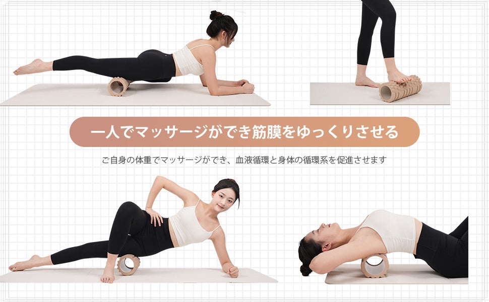 ①WeMeフォームローラーは深部組織のマッサージや運動後の筋肉組織から乳酸を分解するのに非常に効果的です。