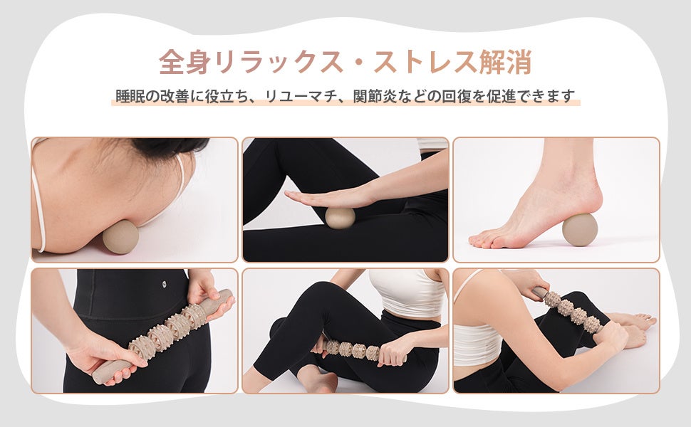 ③ヨガボールは前腕、首、肩、足の裏を転がすのにとても適しています。