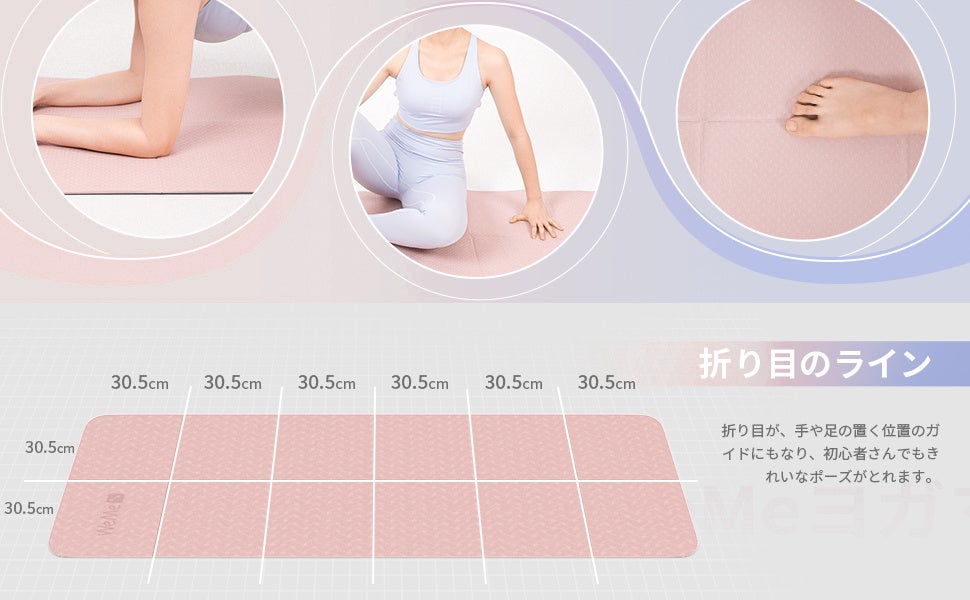 WeMe 折りたたみ式ヨガマットには折り目があり、簡単に段階的に折りたたむことができます。 ヨガマットの折り目は、ヨガやエクササイズ中に姿勢や体が平行になっているかどうかを確認することができます。体幹のトレーニングに最適!