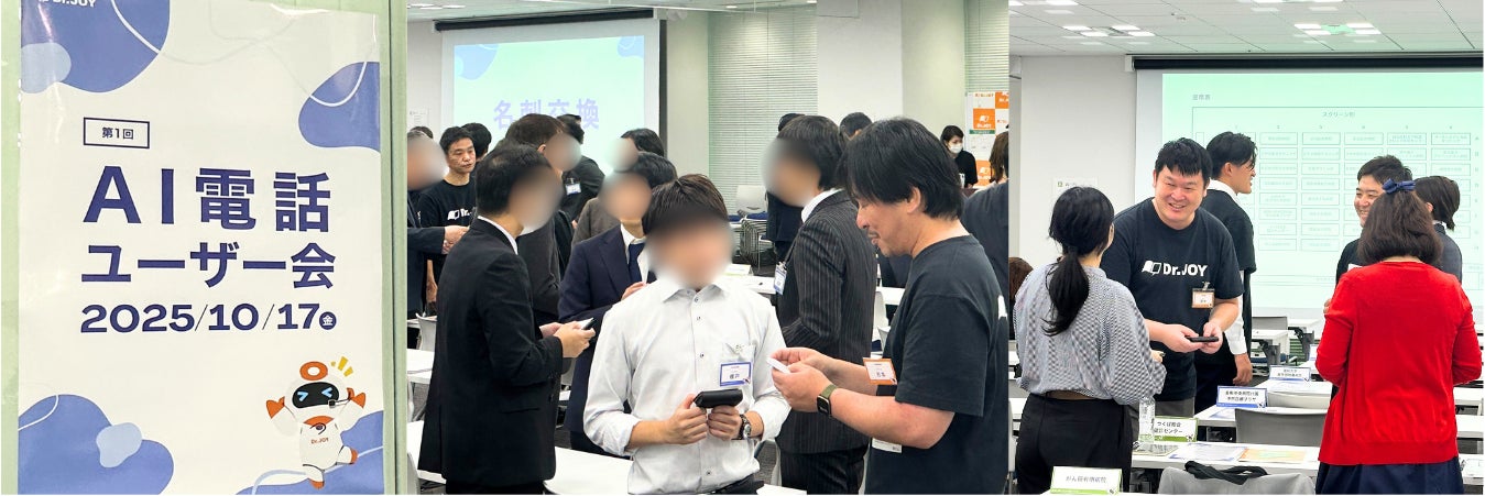 名刺交換・交流、講演会、パネルディスカッション、グループディスカッション、Dr.JOY他事業部の製品紹介、懇親会を実施しました。AI電話を中心とした運用改善の実例や、現場での課題解決を多角的に議論しました。