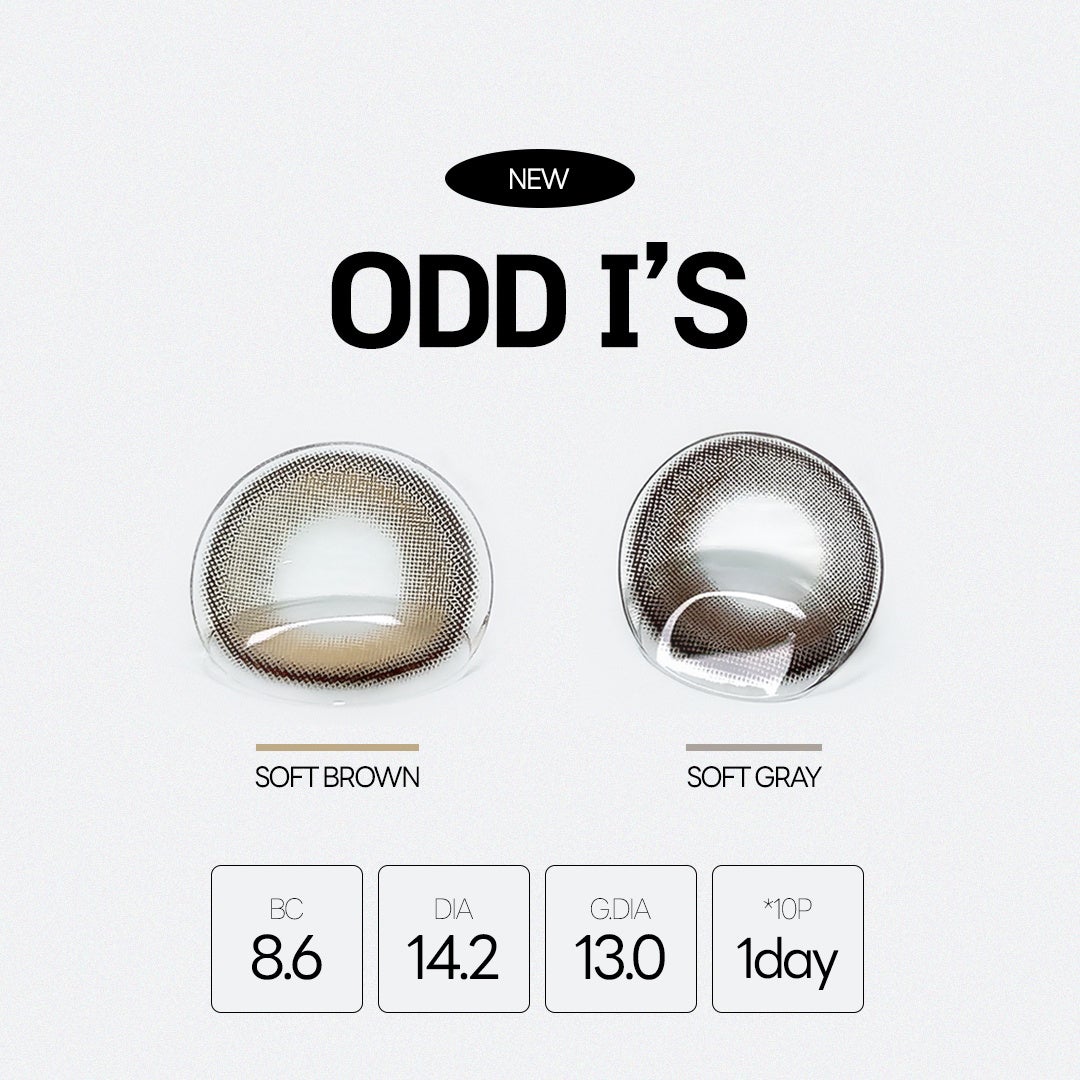 オッドアイズシリーズは、自然なグラフィックデザインと洗練されたアッシュカラーが本来の瞳に重なり、メイクのスタイルにセンシュアルな印象を与えてくれる。また、「 オッドアイ(Oddl’s)」は使いやすいワンデーレンズからマンスリーレンズ、着用期間やトーン、直径まで、個人の好みに合わせて選ぶことができる。