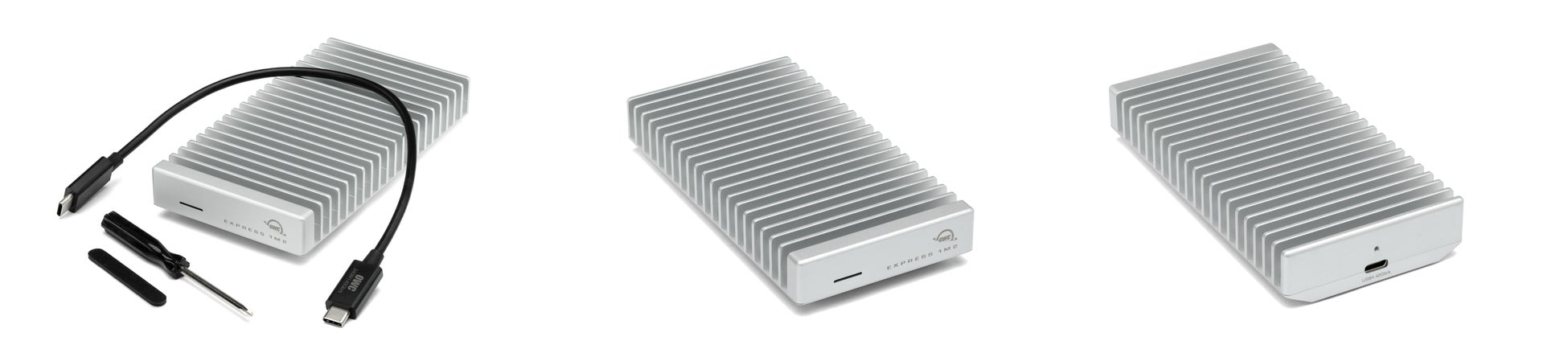 またExpress 1M2は高性能OWC Aura SSDを搭載したOWCソリューション、2230、2242、2280のNVMe M.2 SSDが利用可能なDIYできる頑丈で安心のアルミ製筐体のみを選べる柔軟性のあるラインナップ。