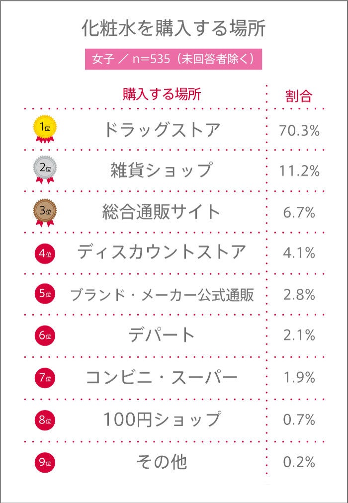 化粧水を自分で購入する高校生に対し、「化粧水を購入する場所」についてアンケートを実施。