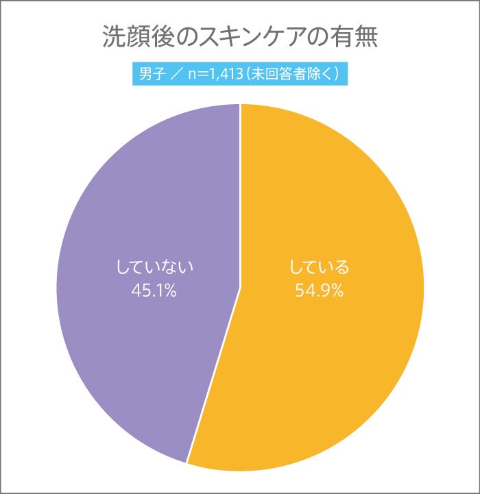 洗顔後のスキンケアの有無について、男子は約6割で、“している”と答えた高校生がわずかに多いという結果に。女子は、8割以上がスキンケアをしていることがわかりました。