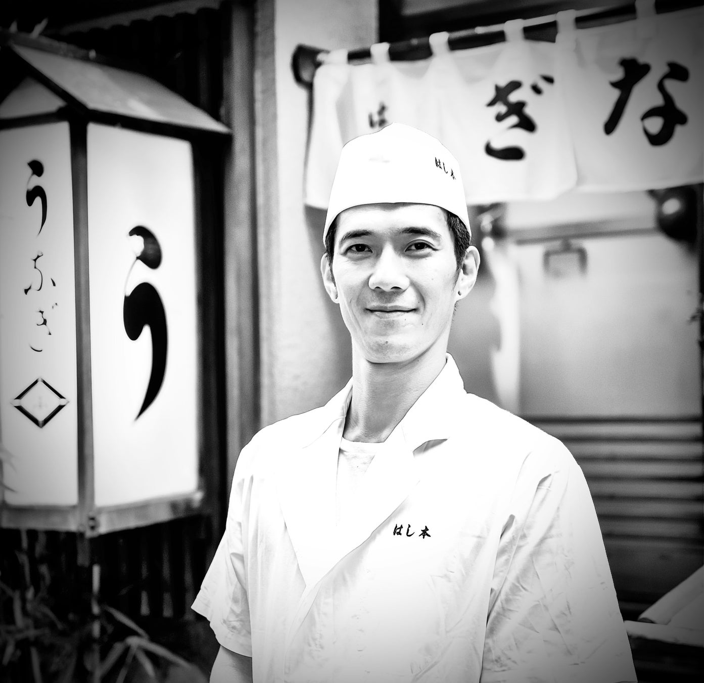 1979年東京都生まれ。24歳の時に[はし本]に入り修業を積む。2016年に4代目店主就任。2018年6月には岡山県のエーゼロ株式会社、中央大学海部健三教授とともに「うなぎの未来の相談会」を開催。