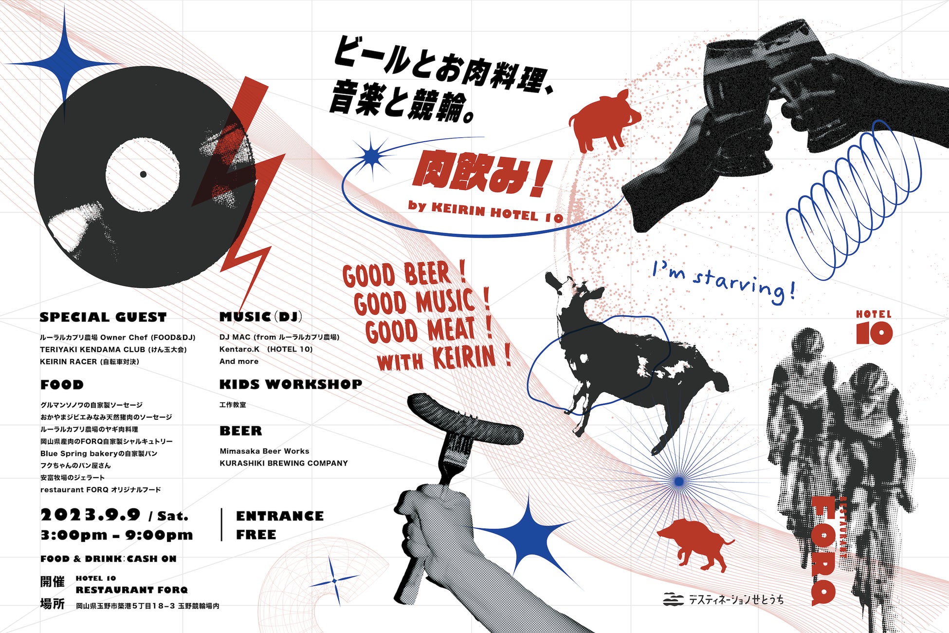 テーマは”肉飲み!”岡山のお肉とクラフトビールを味わうフード&音楽イベントを、9月9日(土)に「KEIRIN HOTEL 10 by 温故知新」で開催!〜競輪レースとDJによる音楽も楽しめる一日を〜
