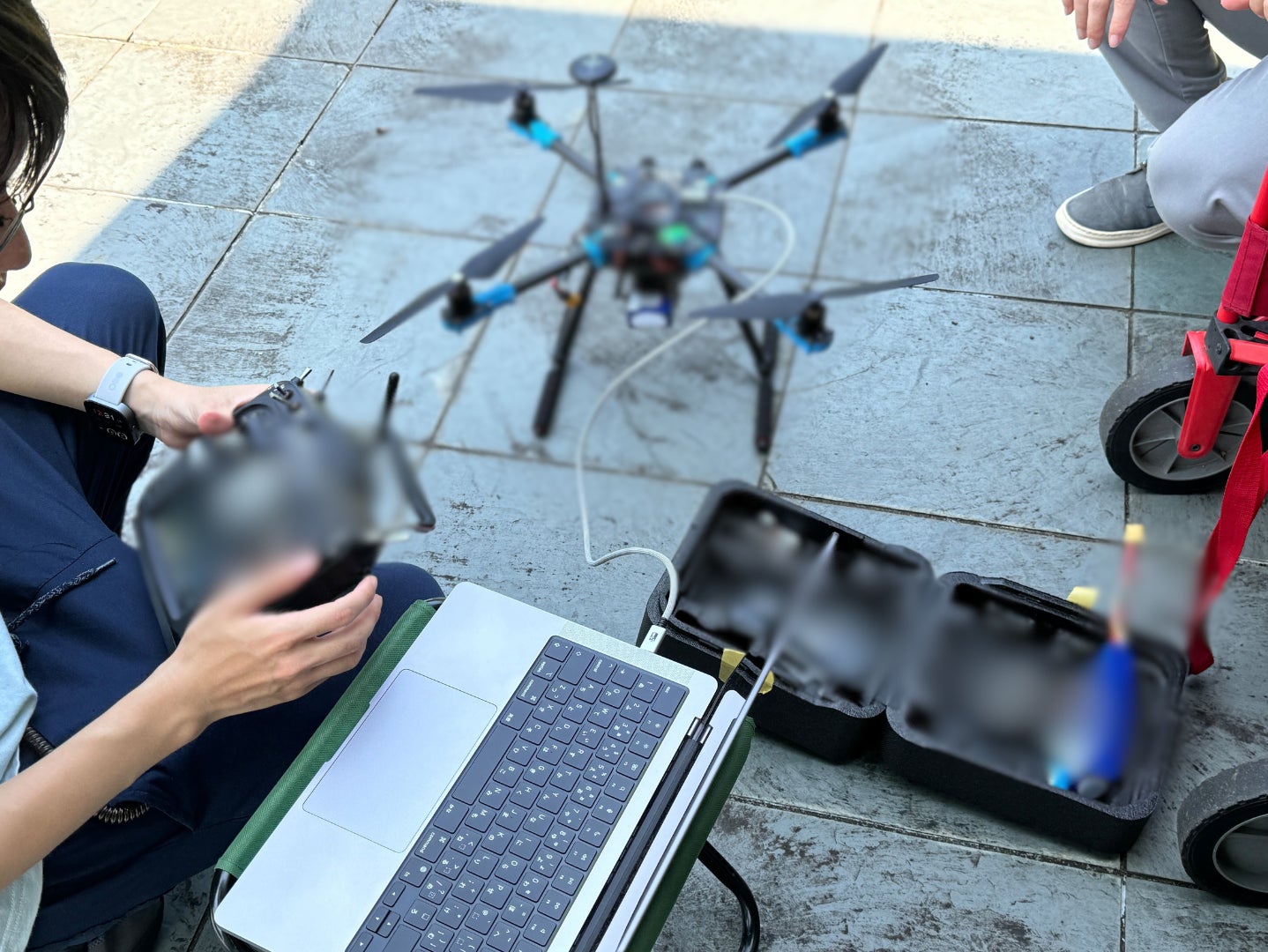2024年8月に行われたフェーズ1のプロジェクト検証では、活用段階の大前提である、ドローンの安定した制御をコントローラーで行うテストを行いました。