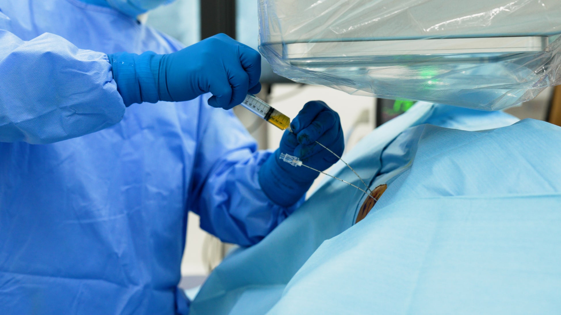 採血後、院内で自己フィブリンを当日中に作成、穿刺針を椎間板に挿入し、透視装置を使って損傷した椎間板に自己フィブリンを投与します。施術に要する時間は、1箇所あたり20~30分程度です。