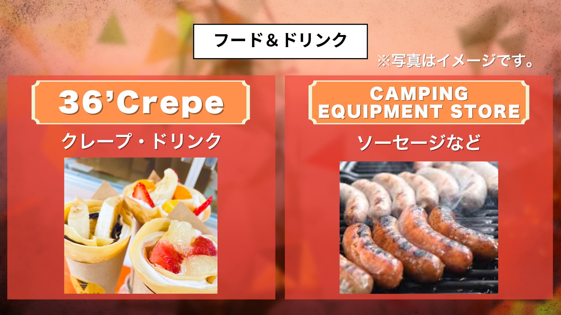 外に出て、さわやかな空気の中で、温かいおいしい食べ物や飲み物がたくさん!