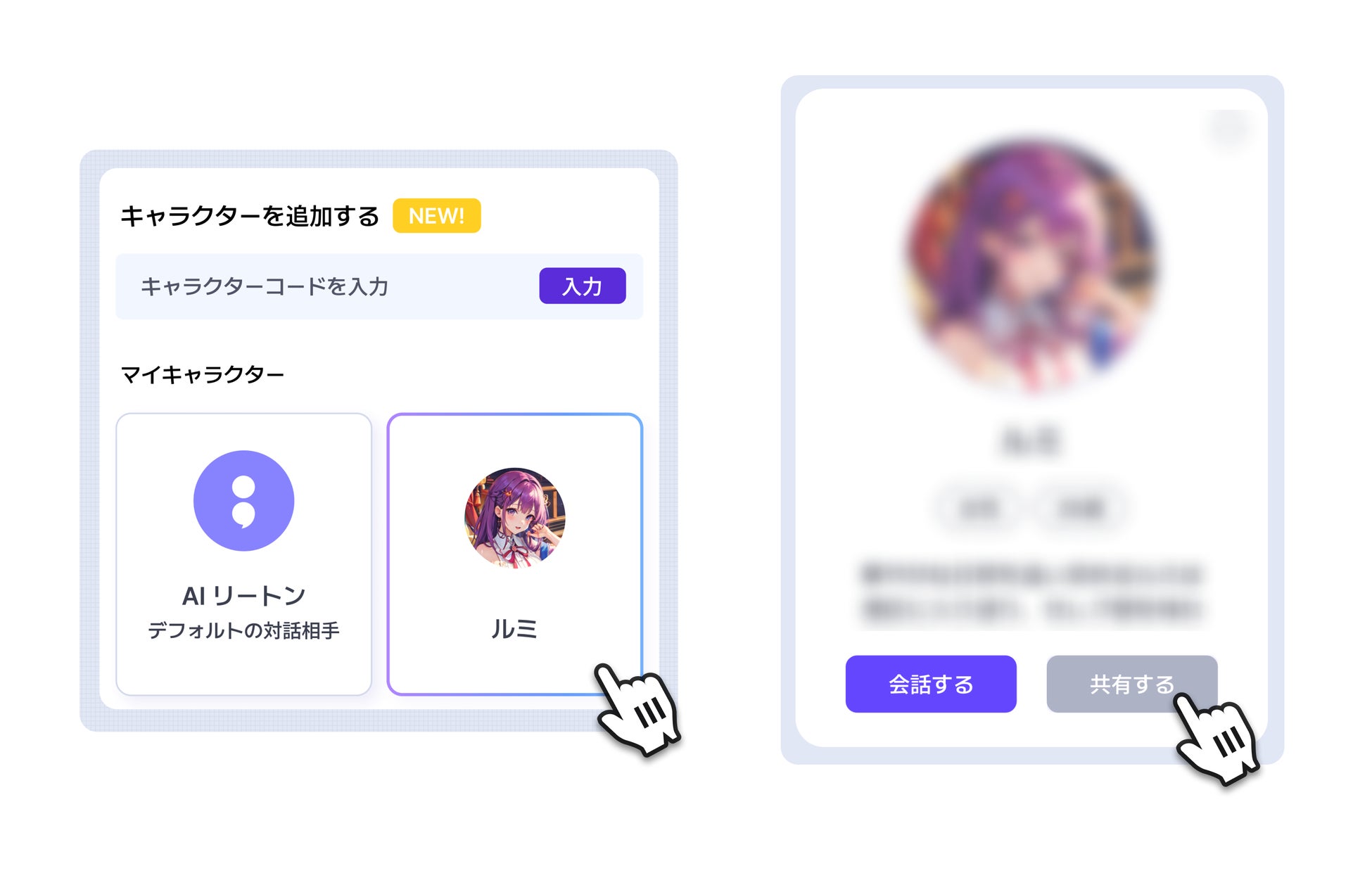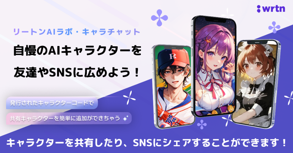 “みんなのAI” リートンテクノロジーズ、自慢のAIキャラクターをみんなにシェアしよう!生成AIで作ったキャラクターをシェアできる「キャラクター共有機能」を公開