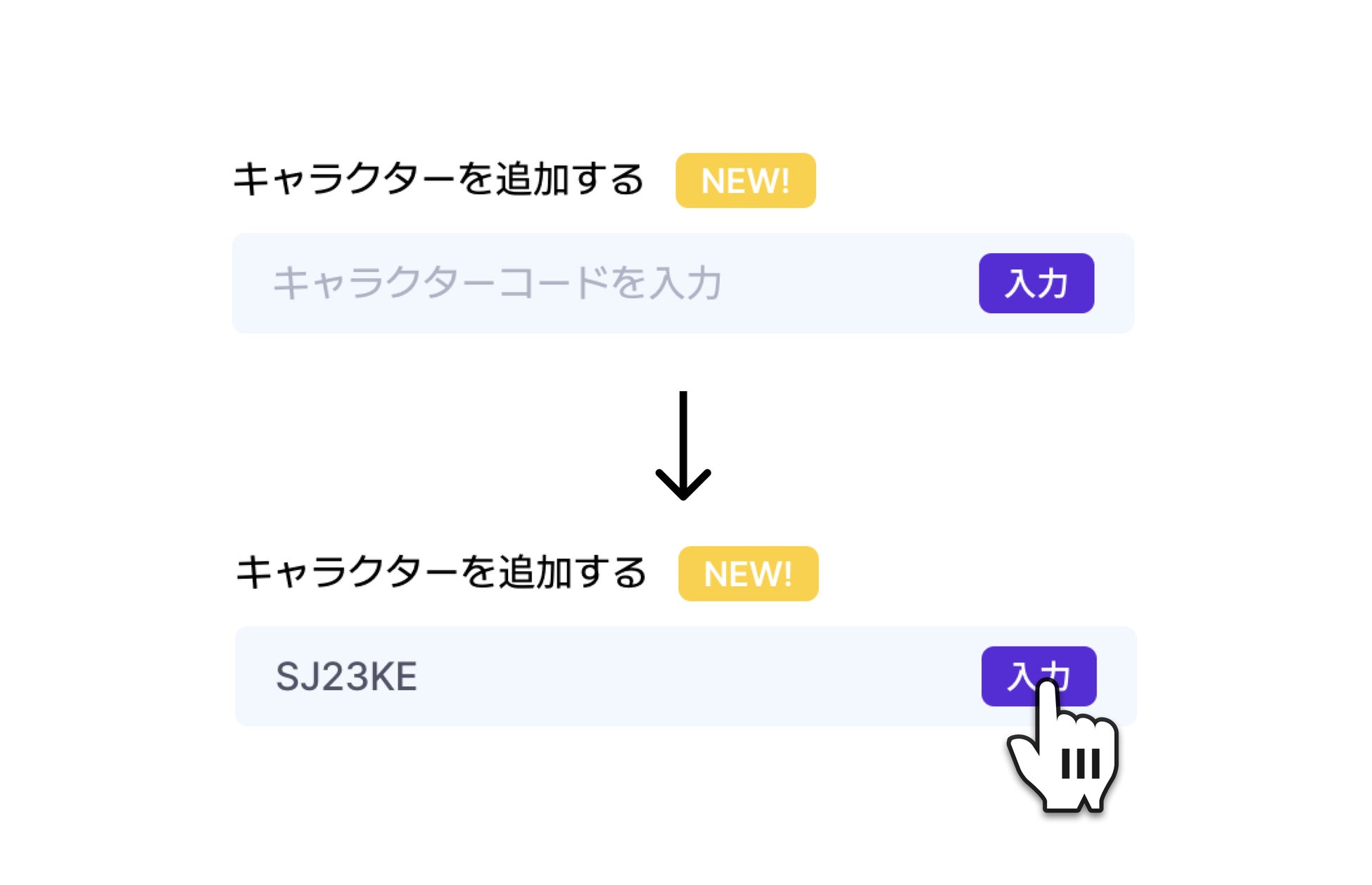 2.キャラチャットメインページ画面上の[キャラクターを追加する]にコードを入力
