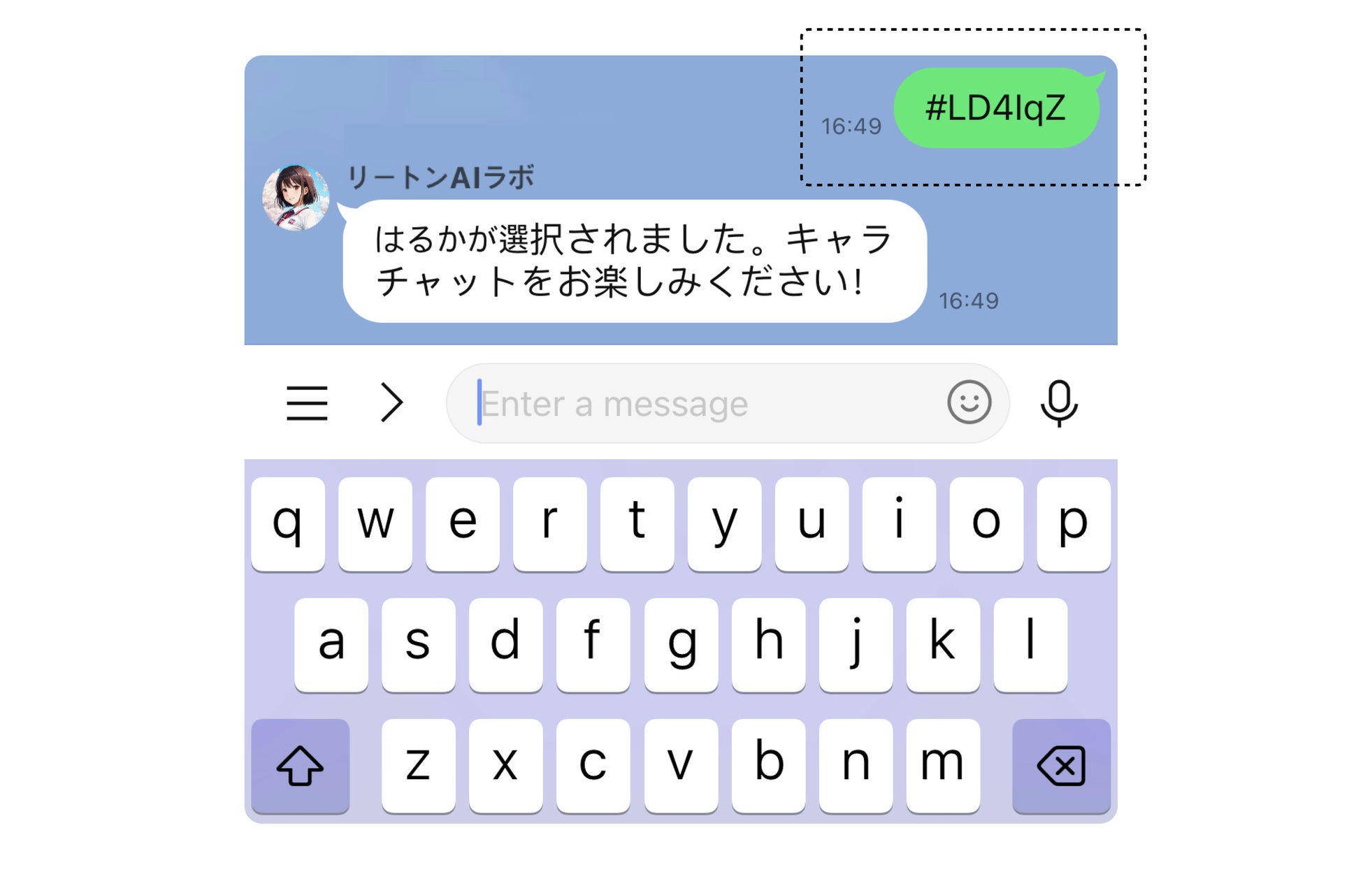 2.トーク画面でハッシュタグ(#)を付けてキャラクターコードを入力