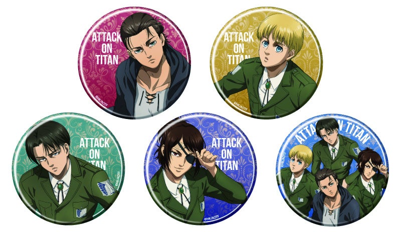 ファンにはたまらない缶バッチやトートバッグ、マグカップ、アクリルアートボード、クリアファイル、フレークシールなど約100種類の人気アイテムを限定販売します。何が出るかは開けてからのお楽しみ、トレーディンググッズも多数用意!! 圧倒的な人気を誇るリヴァイのグッズもご用意しています。