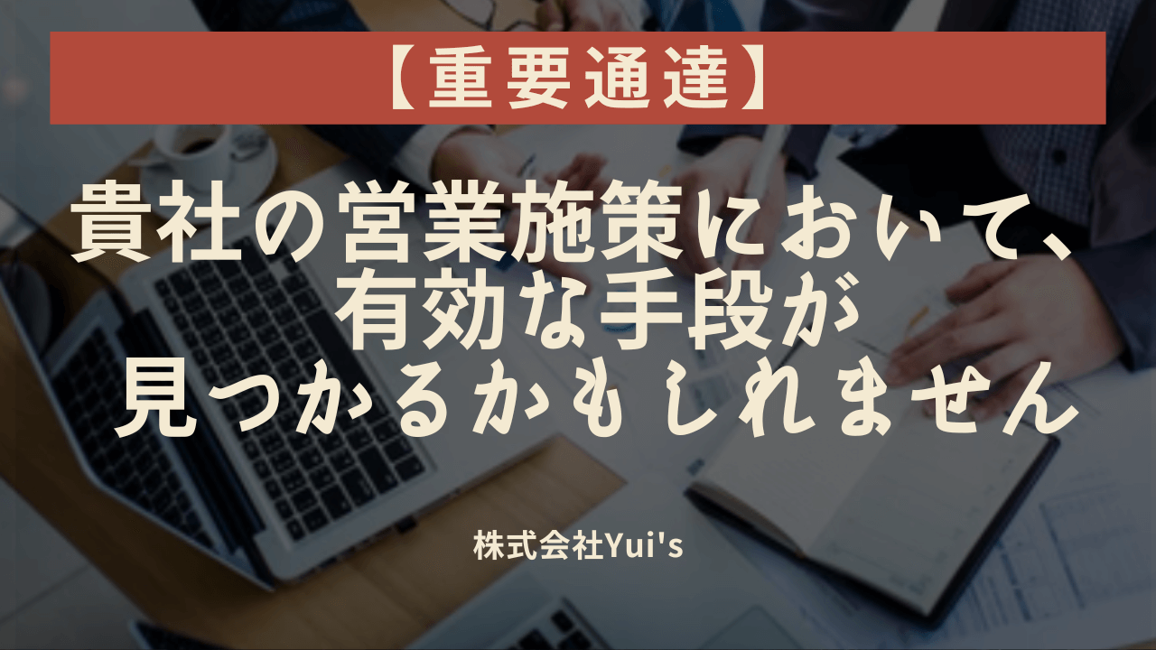 【重要通達】貴社の営業施策において、有効な手段が見つかるかもしれません