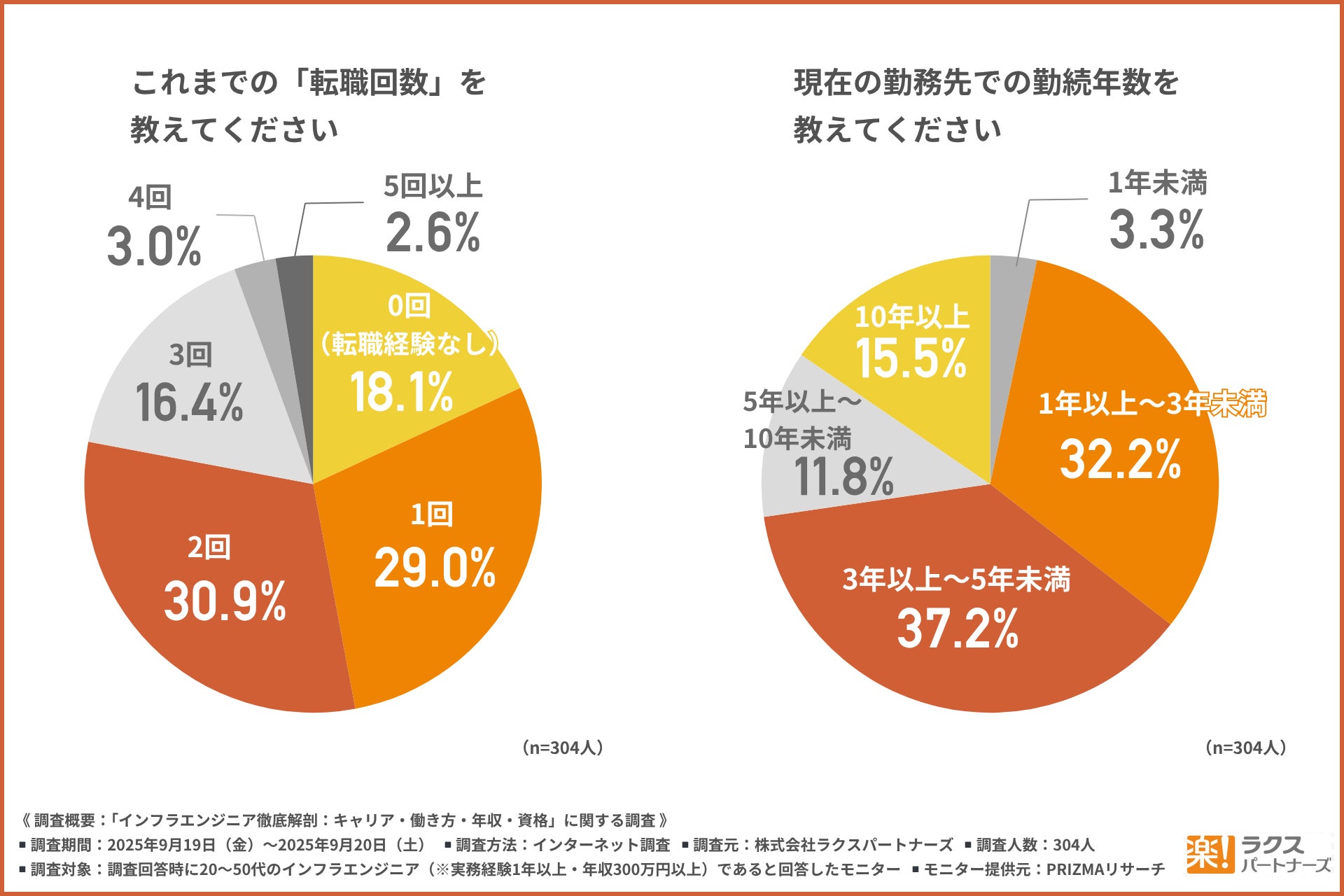 ・転職回数は「1〜2回」で過半数、一方で長期定着層も一定数存在し、キャリア構築スタイルが多様化