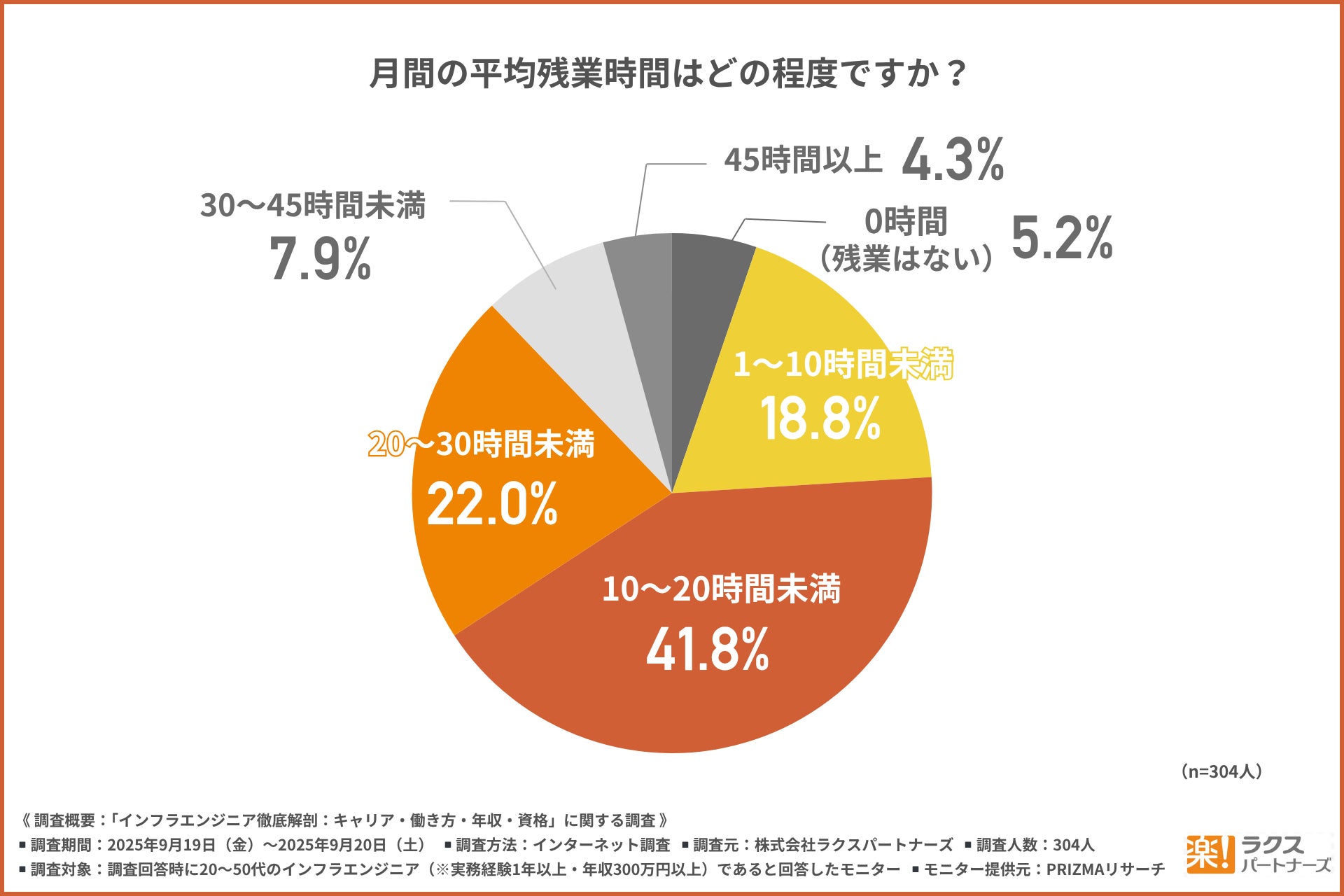 約4割が「月10〜20時間未満」と回答し、極端な残業はない様子がうかがえます。