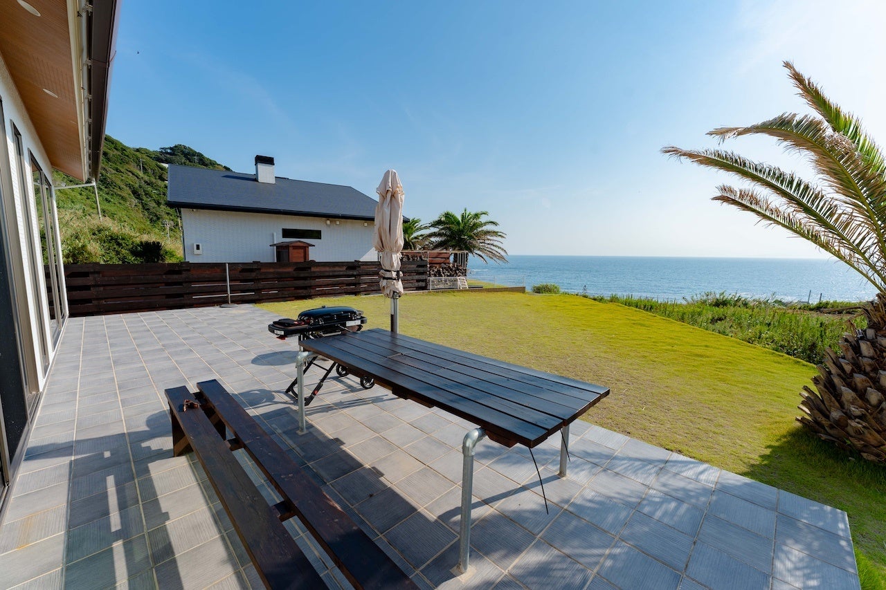 布良海岸のほど近くに佇むプライベートヴィラ。海風と水平線を眺めながら愛犬とゆったりと過ごし、広々としたお庭やBBQで思い思いのひとときをお過ごしいただけます。
