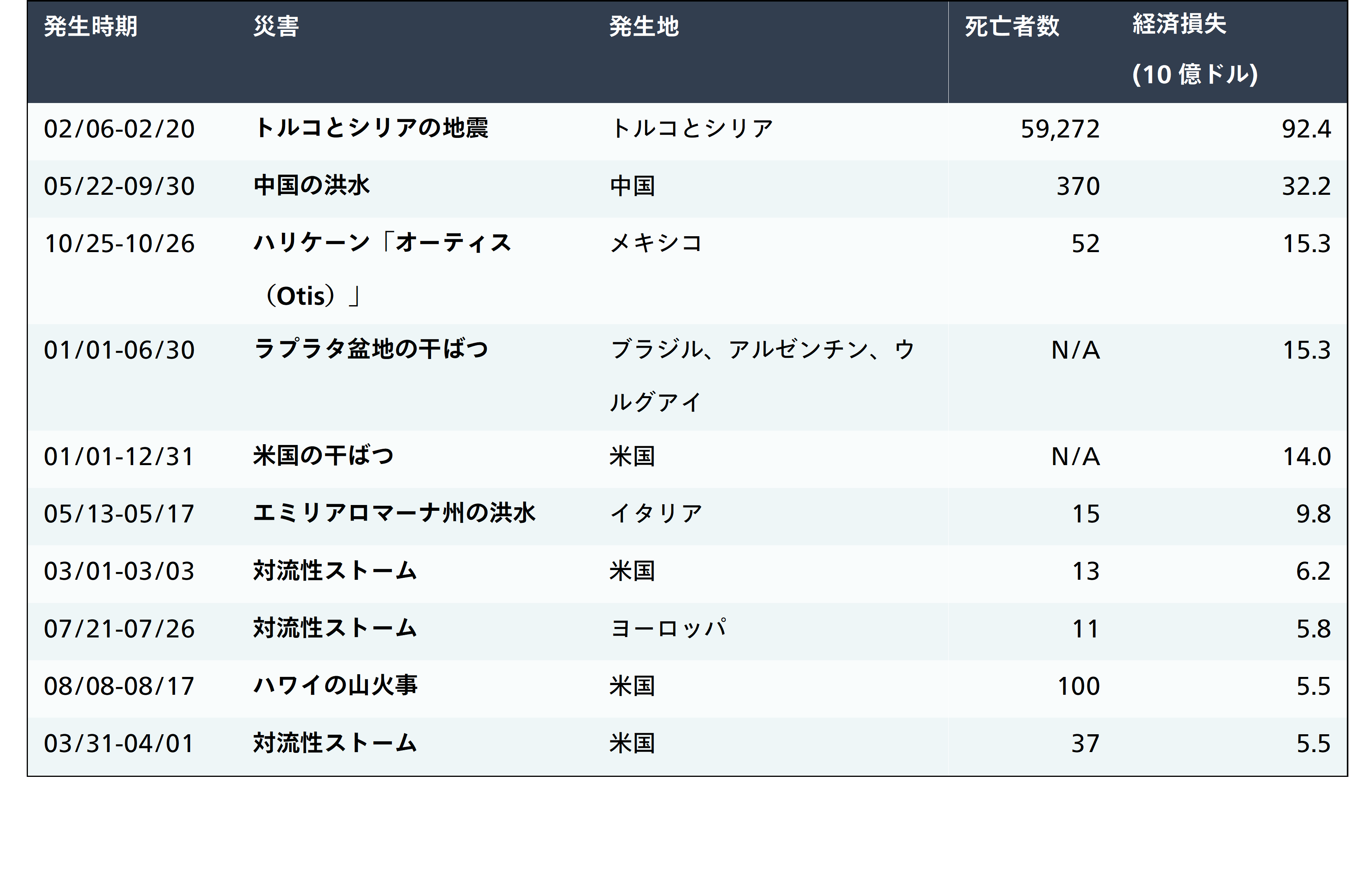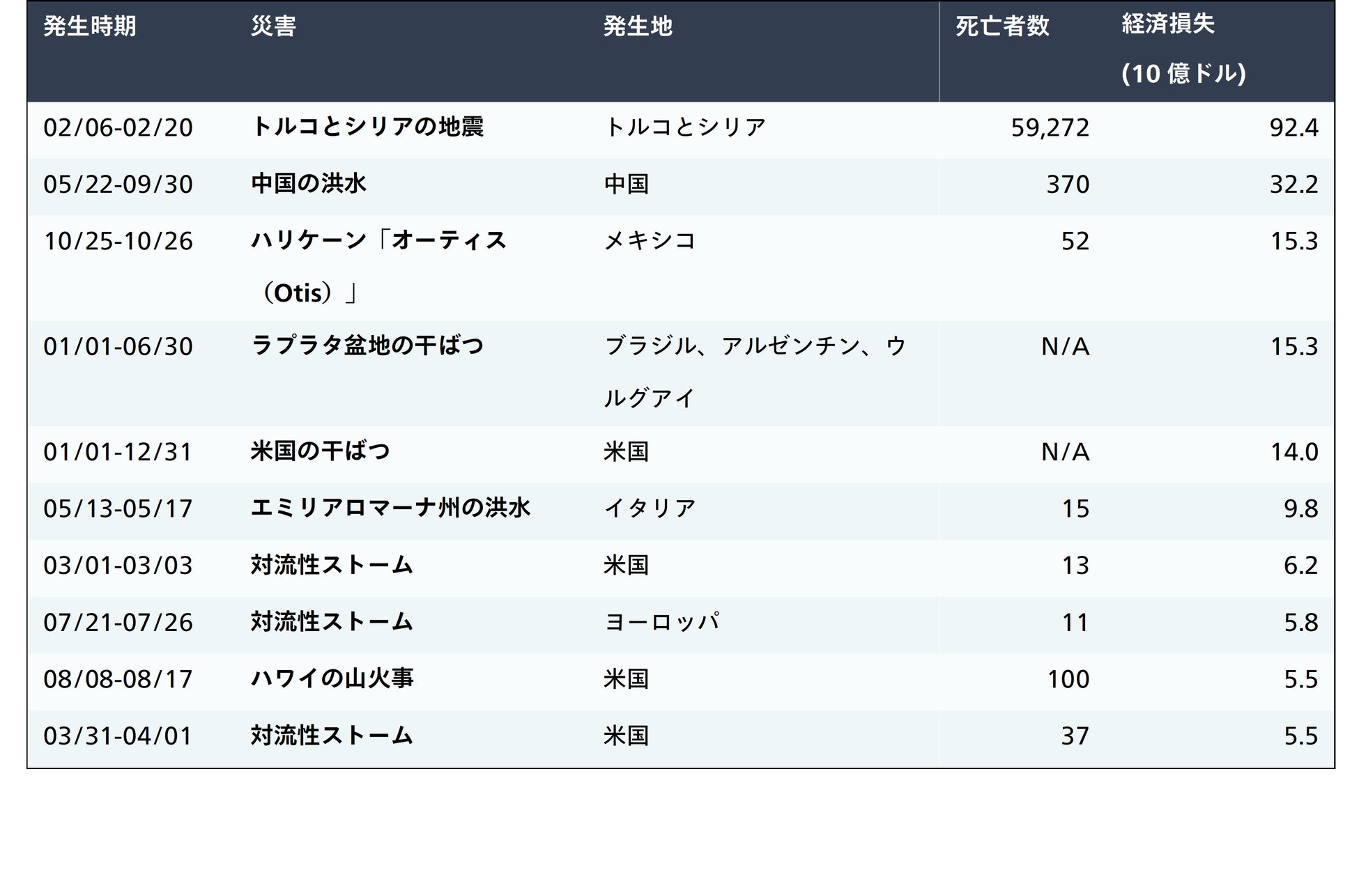 2023年の世界の経済損失トップ10