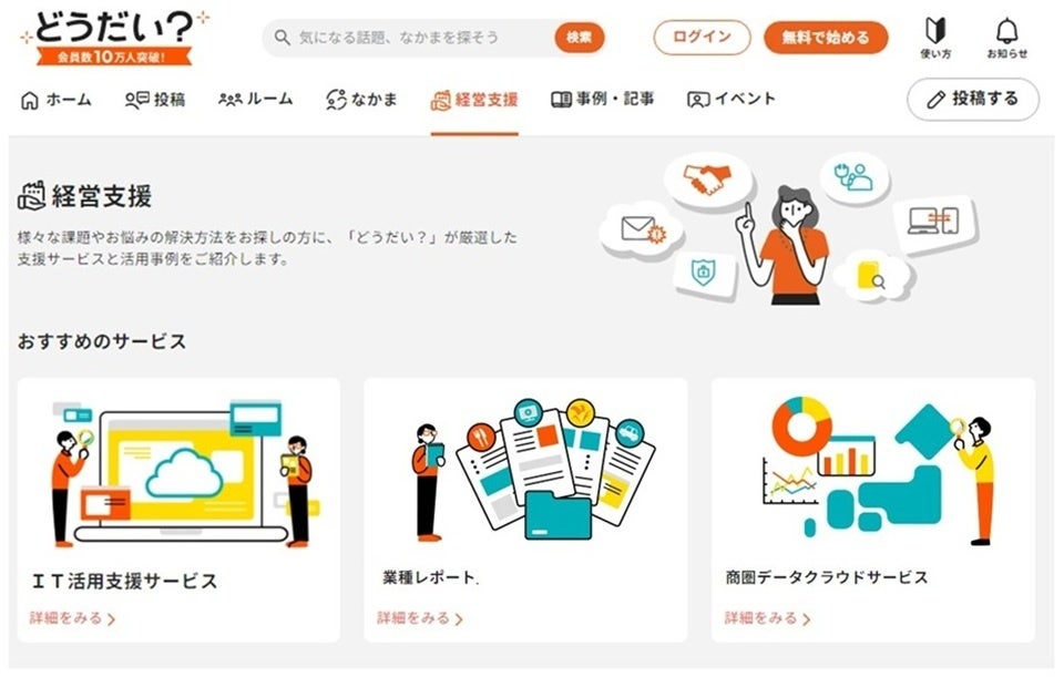 会員数10万人以上を誇る「どうだい?」では、経営者様のお悩みに応える生の声をはじめ、豊富な情報を発信しています。会員の経営者からは、より販路開拓に直結するような定量的データを求める声がありました。今回、日本統計センターが保有する統計データを掲載することで、従来の定性的な情報に加え、経営に直結する実践的なデータ活用が可能となりました。