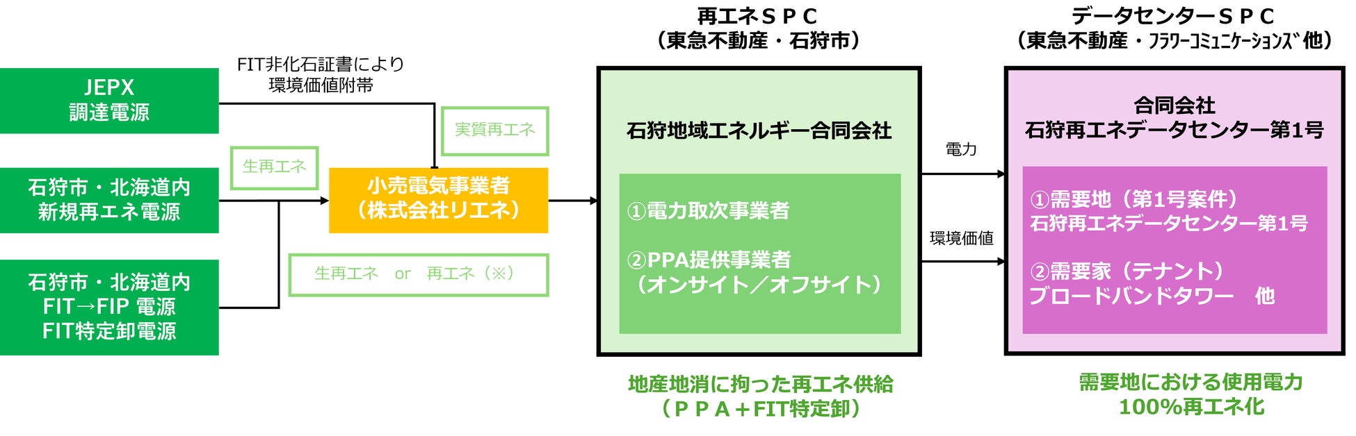 石狩再エネデータセンター第1号は、北海道石狩市において、再生可能エネルギー100%で運営するデータセンターの事業化に向けて株式会社Flower Communications、東急不動産株式会社の基本合意に基づき、開発・運営主体として株式会社Flower Communicationsが設立いたしました。