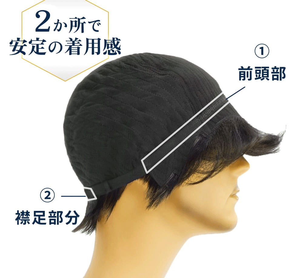 男性特有の毛流れを計算しつくしたキャップ形状と、老け見えさせないダンディなデザインです。