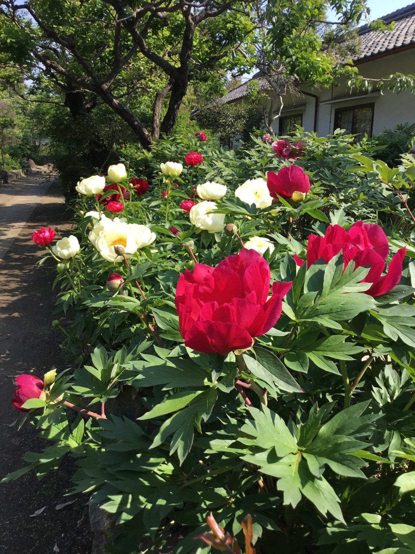 春牡丹が終盤に向かう頃、まん丸な蕾みからポツポツと咲き始めている色鮮やかなシャクヤクに気付くことでしょう。先代住職が牡丹の後にもお花が続くようにとシャクヤクを植え始めて47年。