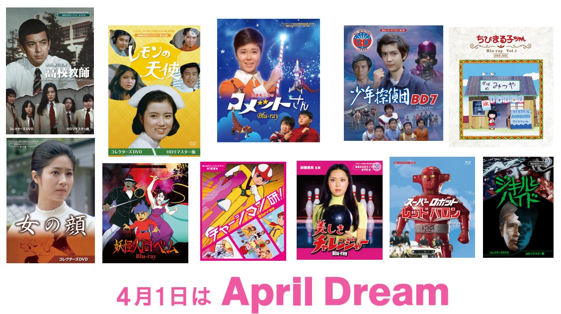 昭和の名作、想い出のアニメ、甦るヒーローをテーマにDVD&Blu-rayの企画、発売を行うベストフィールドは、4月1日を夢を発信する日にしようとするApril Dreamに賛同しています。このプレスリリースは「ベストフィールド」の夢です。