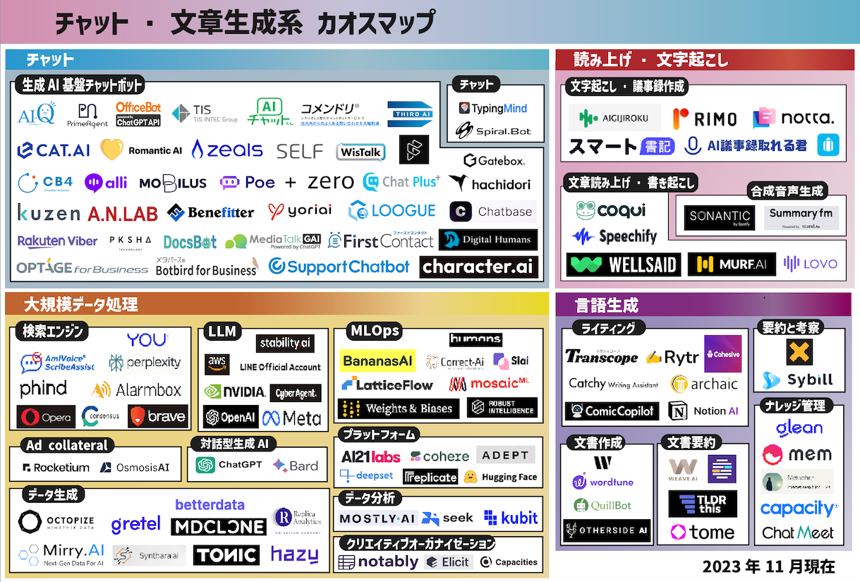 「チャット・文章生成系AIカオスマップ 2023」を公開