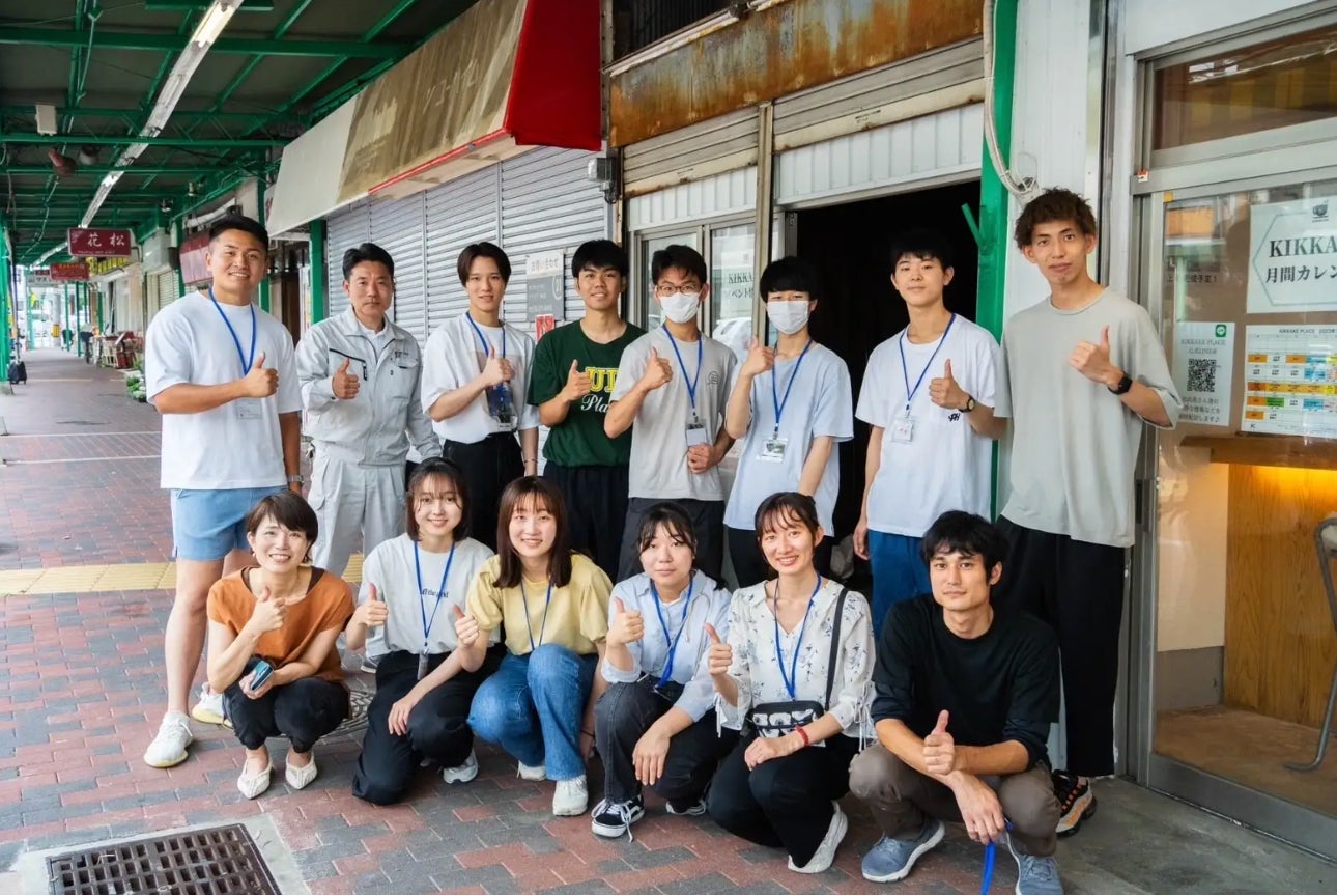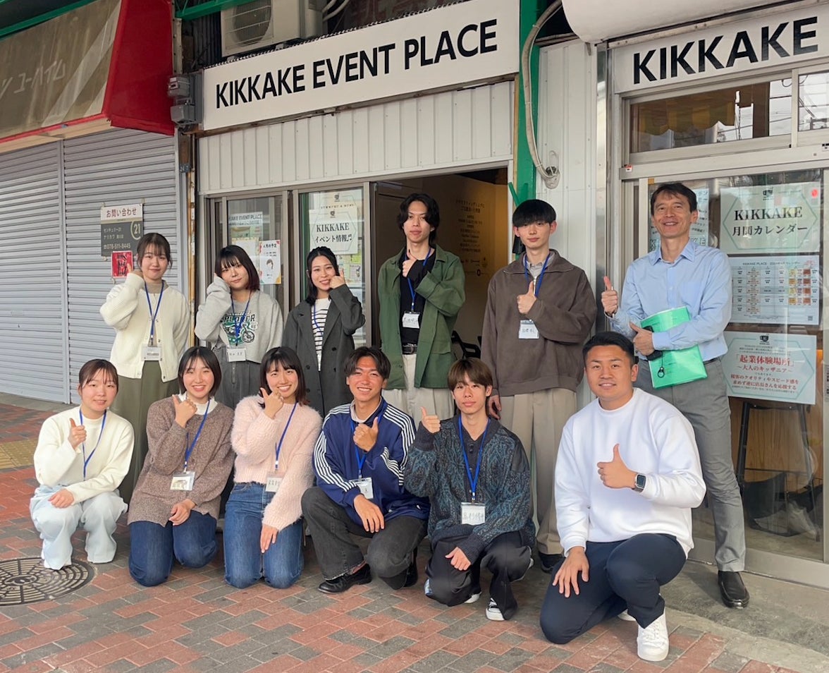 多数の学生の中から内田浩史教授ゼミナールに所属し、経営学に対して学びを深める学生たちが商店街や空き家活用の課題を探求するために、KIKKAKE PLACEの事業の取り組み調査や商店街の方々にヒアリングを行い理解を深めるところから活動を開始。