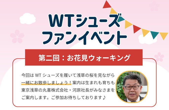シニア向けウォーキングシューズ「100歳まで歩こう!」がテーマ『WTシューズ』ファンイベント「べらぼう」巡りウォーキング5月10日(土)開催。WTシューズを履いて話題の大河ドラマべらぼうの聖地を散策。