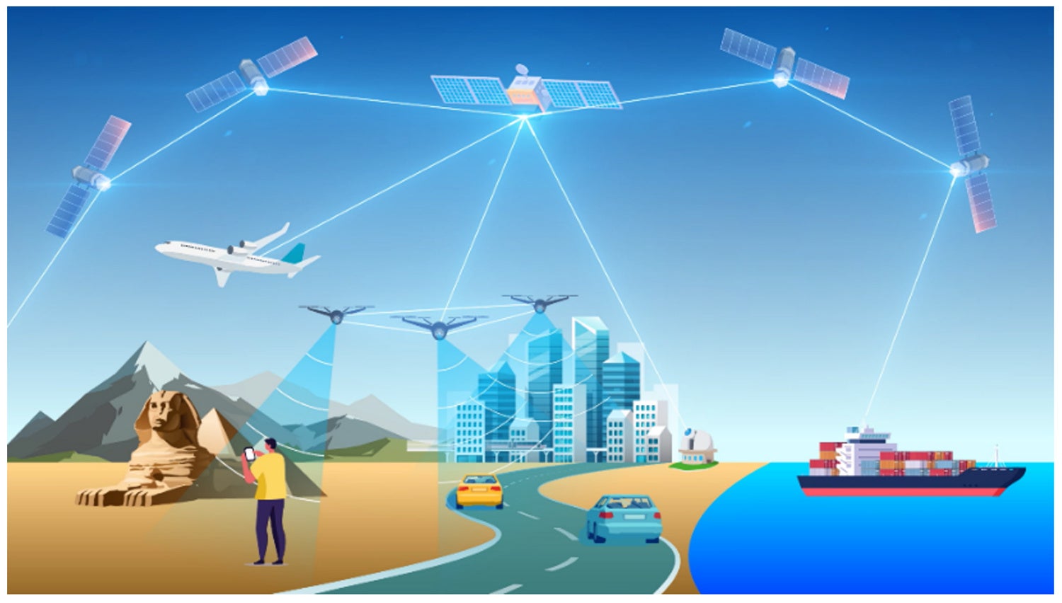 地上各地とつながる宇宙光通信のネットワークイメージ