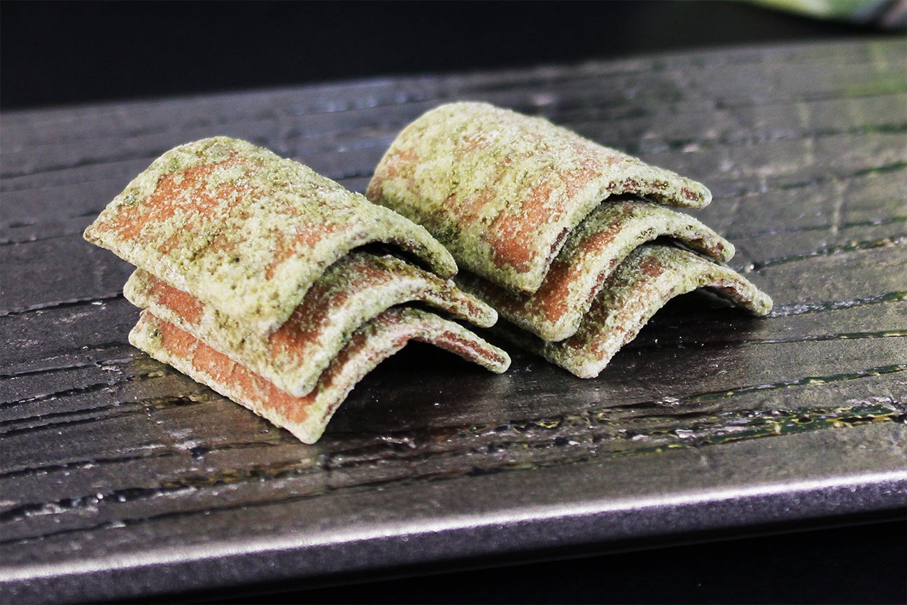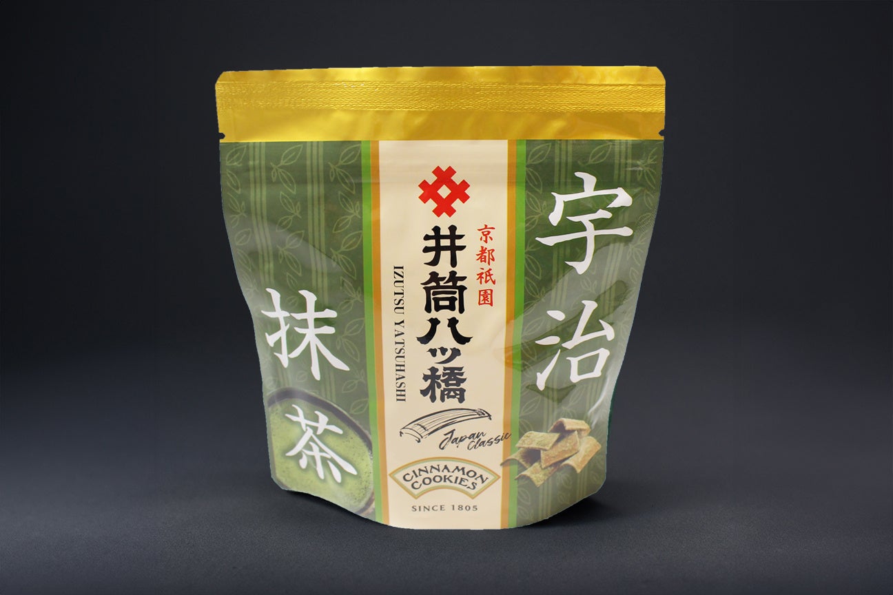 宇治抹茶のもつ苦みと甘みのバランスにこだわり、京都銘菓・八ッ橋に宇治抹茶の風味を重ね、ニッキのほのかな甘みと宇治抹茶のほろ苦さが織りなす上品な味わいに仕上げた。