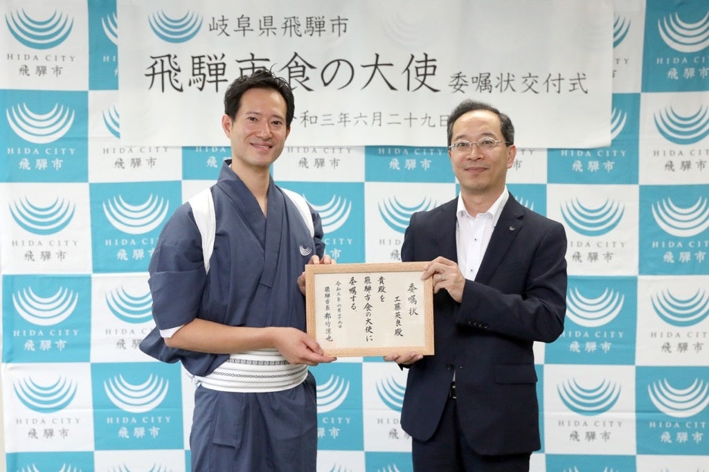 そこで、市独自の「食」の魅力を全国、世界に向けて発信し、認知度向上を図るとともにブランディングを強化するため、令和3年に元フランス大使館公邸料理人の工藤英良氏を飛騨市初の「食の大使」に委嘱しました。