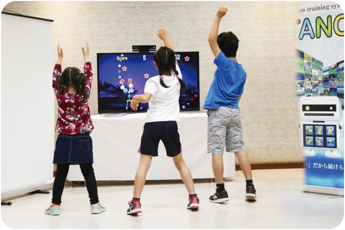 自分のカラダがコントローラーになる新感覚のゲーム体験「TANO(タノ)」。手ぶらで魚が釣れる「沖釣り」、足踏みで退治する「もぐら踏み」などが体験できる。